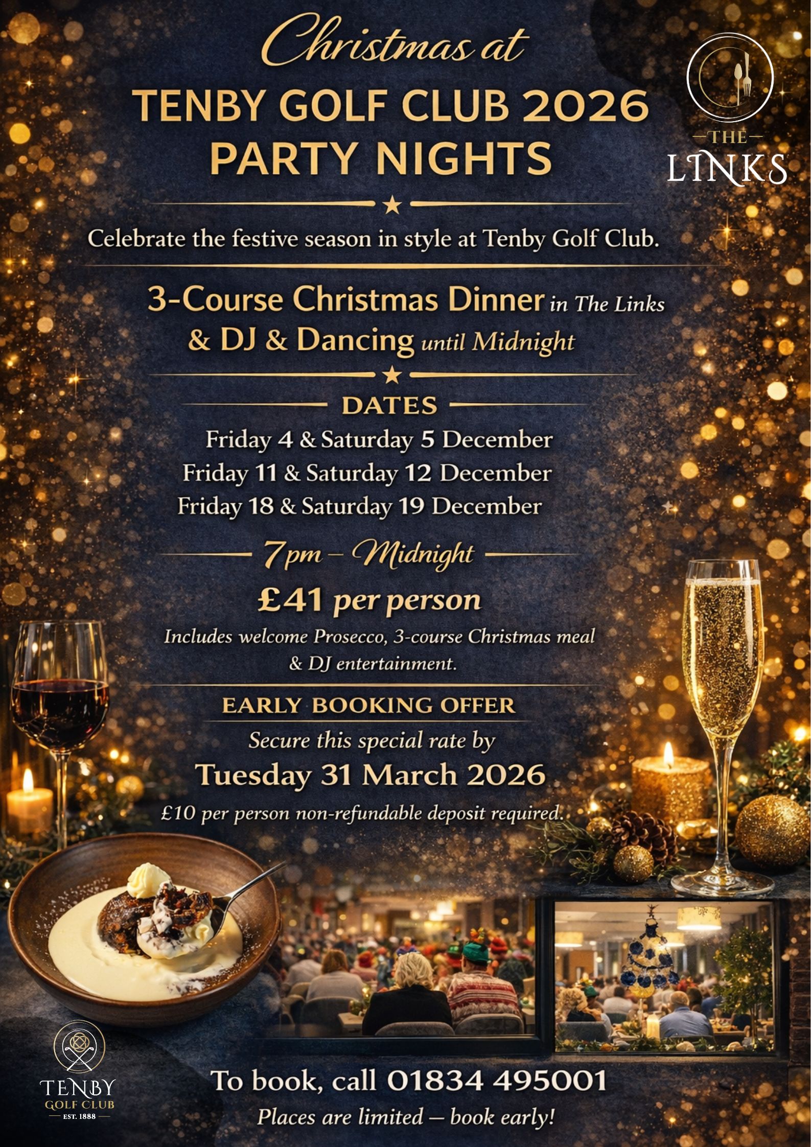 Celebrate the festive season in style at Tenby Golf Club with our popular Christmas Party Nights, taking place across six dates in December.