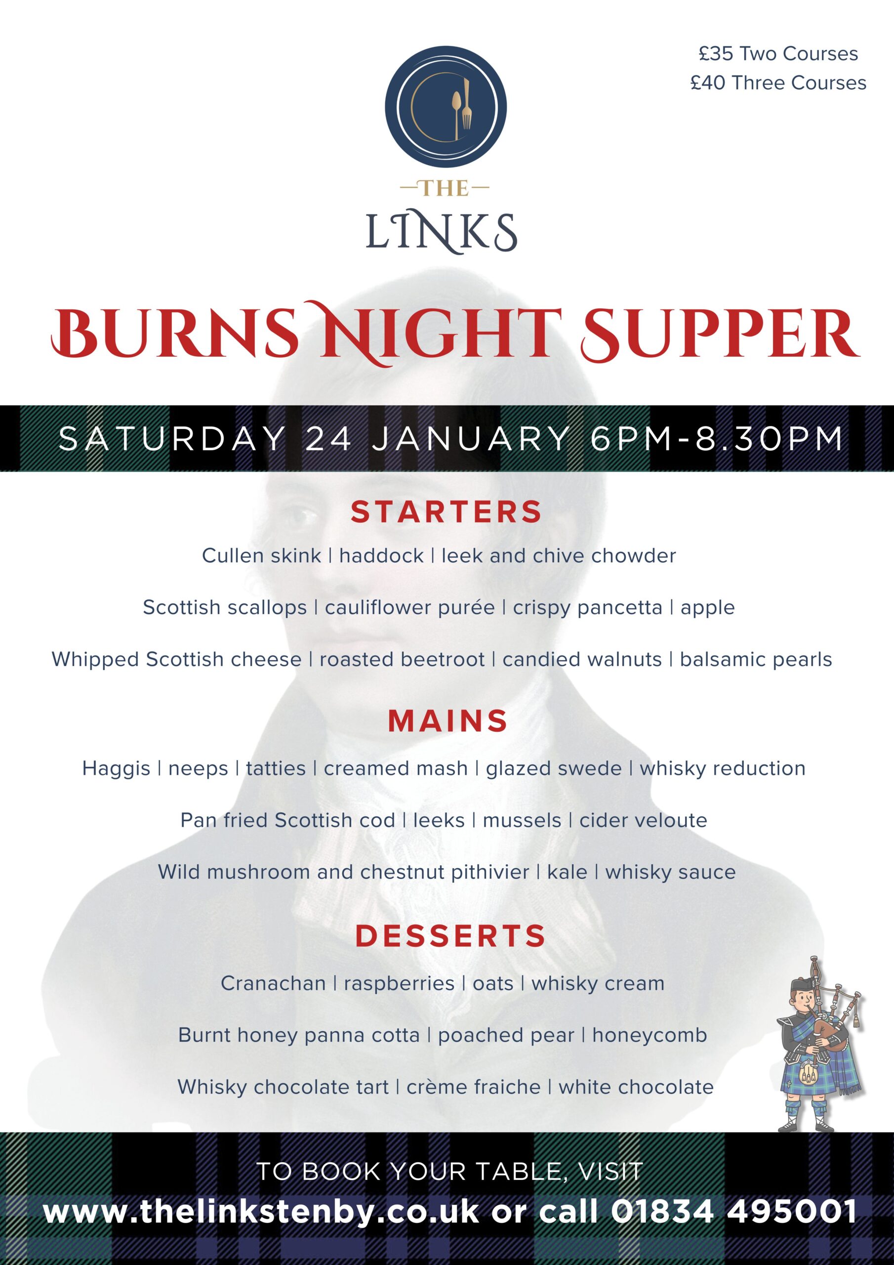 Celebrate Burns Night with a Scottish-inspired supper at The Links, in support of the DPJ Foundation.