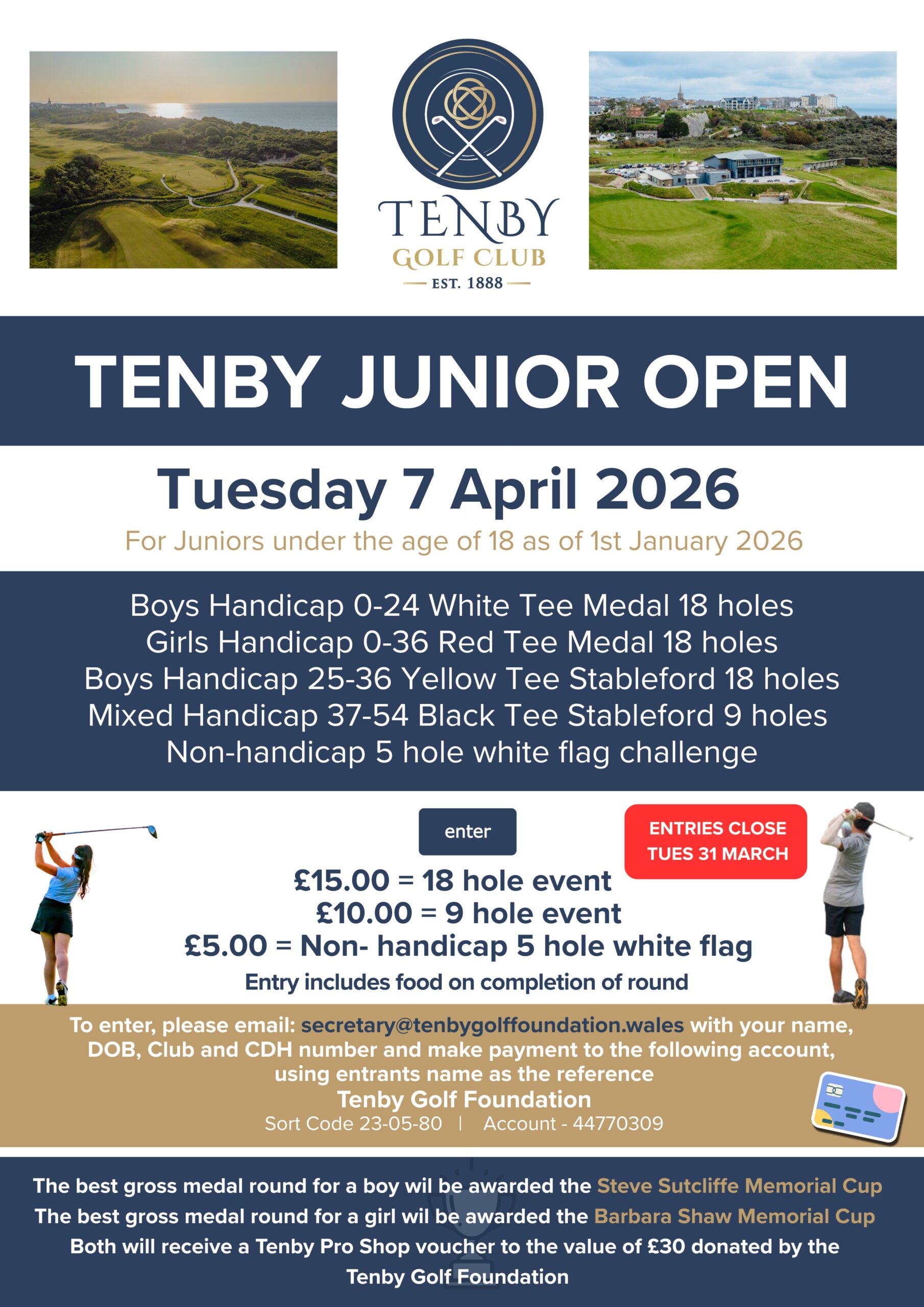 Both winners will also receive a £30 Tenby Pro Shop voucher, kindly donated by the Tenby Golf Foundation.