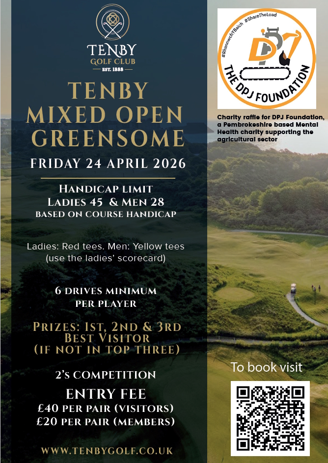 Entries are now open for the Tenby Mixed Open Greensome. Places are limited, so we recommend booking early to avoid disappointment.